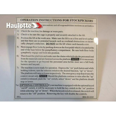 B06-00-0285 Decal-Operation Instruc-Stk P | Genuine Haulotte
