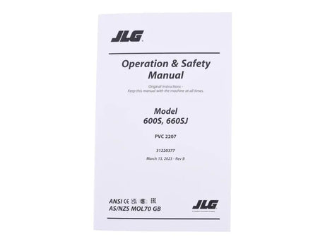 31220377 Manual, Operator 600S/660Sj PVC 2207 | JLG