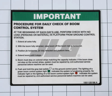 1001125196 Calcomanía, control diario Bcs | JLG