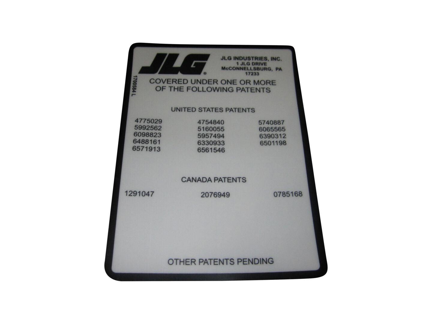 1700584 Decal, Patent (Blk) | JLG