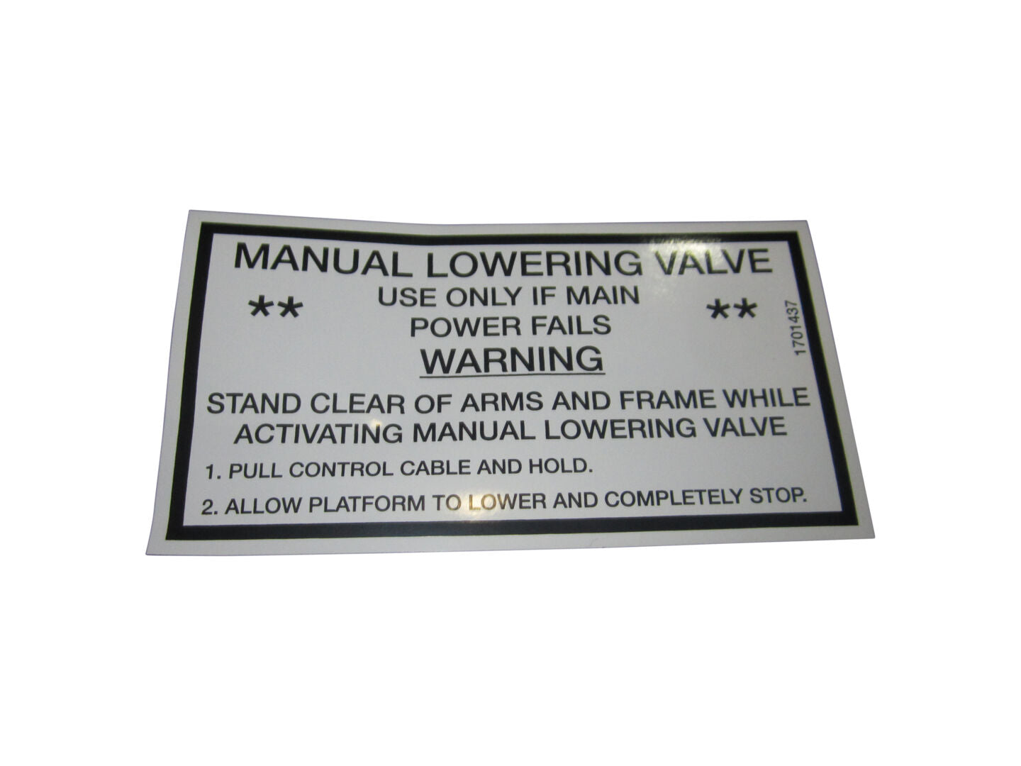 1701437 Decal, Manual Lowering | JLG