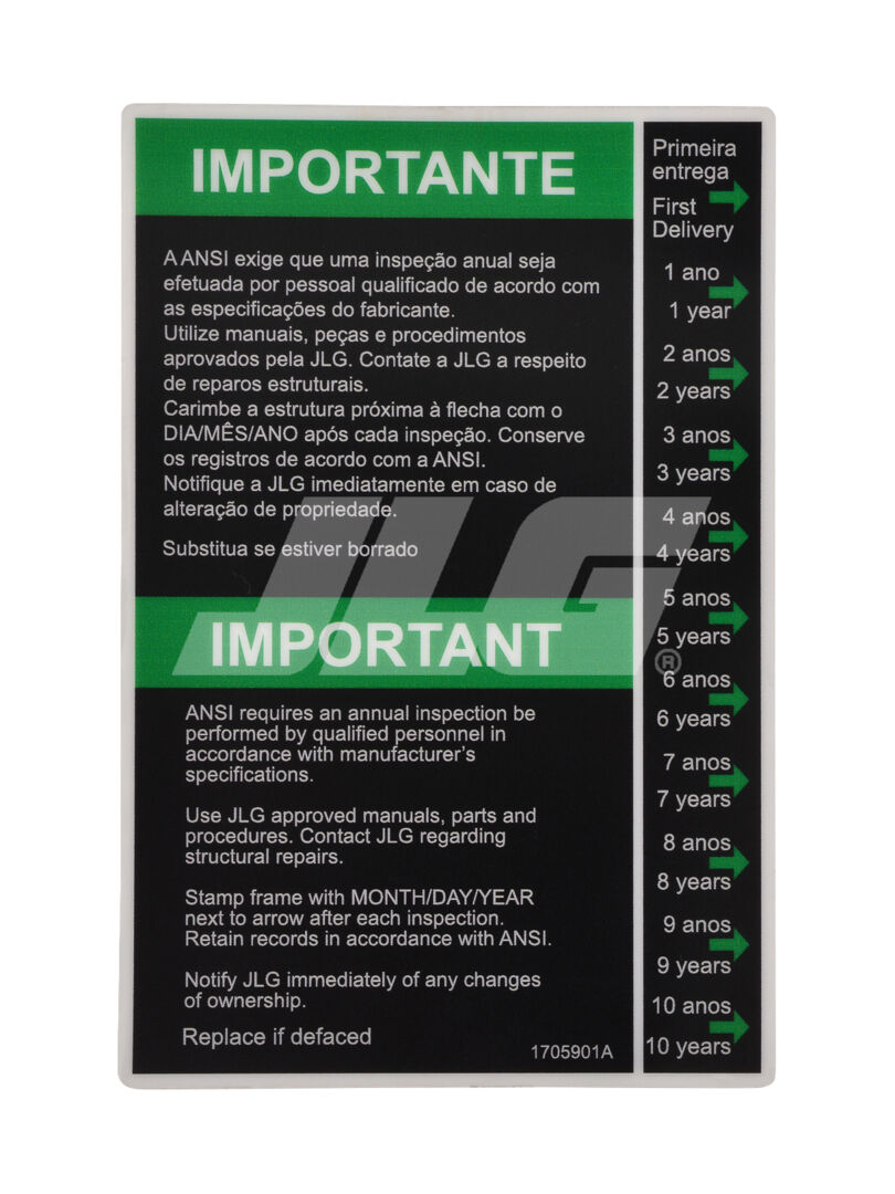 1705901 Decal Inspection (Brz Por) | JLG