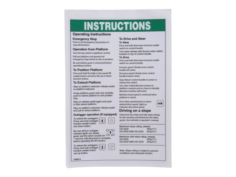 70044918 Decal, Instructions Op, Er | JLG